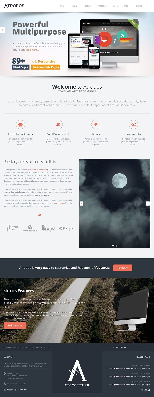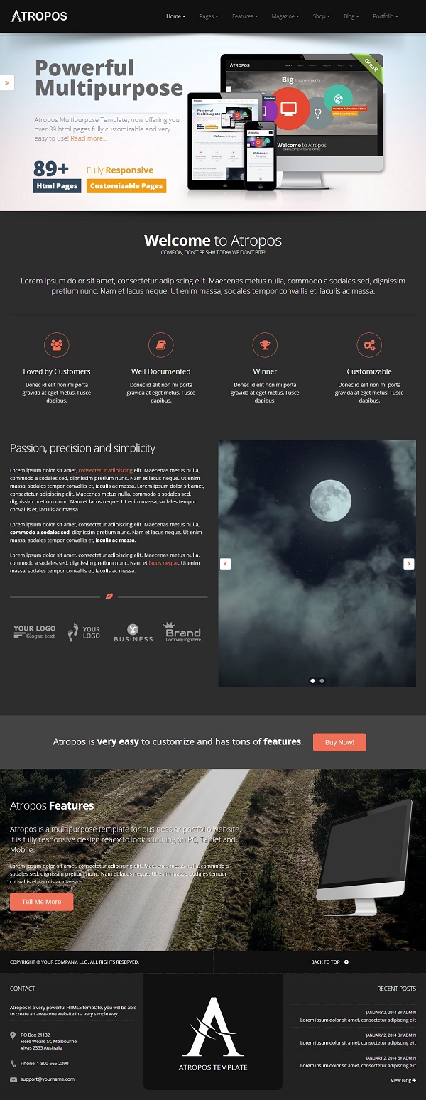 Atropos template can be used by anyone. Doesn't matter if you need it for a business, school, church, lawyer, porfolio, personal or anytihng else. Atropos is very configurable - with only few copy/paste actions, you can build the website you want or imagine. More than that... Atropos will be frequently updated, new features will be added frequently. It' fully responsive and very flexible.